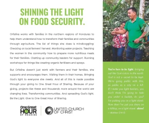 One Great Hour of Sharing® is one of four special mission offerings of the United Church of Christ.