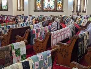 Our community has several needs – and the quilts made help.  Be a part of the mission!   Enter at the North door at 9am or after.